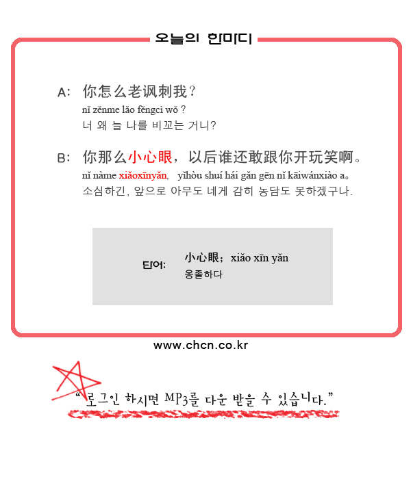讽刺 비꼬다 小心眼 소심한